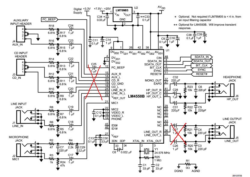 使用LM4550B芯片Typical Application方案做的硬件设计,只需要用到MIC和HP_OUT两个功能。
