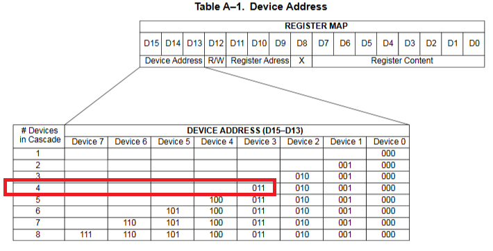 级联4个AIC10,Device地址是从000开始的,第四个Device地址是011