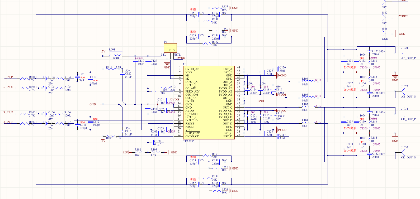 功放部分参考《TPA324x and TPA325x Post-Filter Feedback》《TPA3255EVM User's Guide》《TPA3251D2EVM User's Guide》