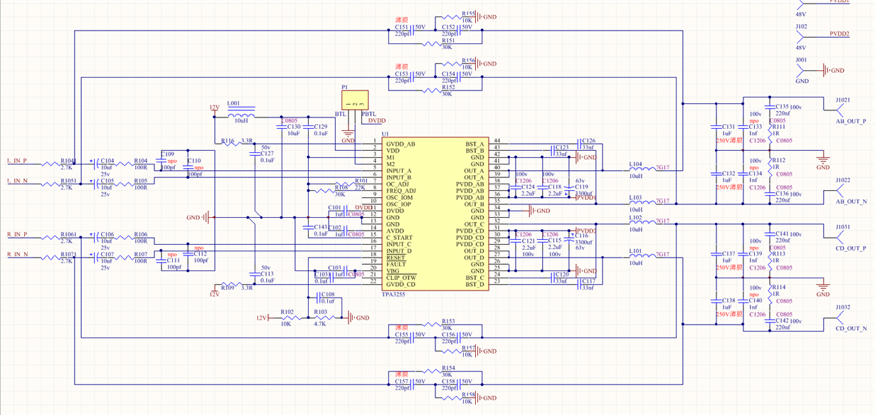 电路平衡输入部分参考《TAS5630PHD2EVM User's Guide》
