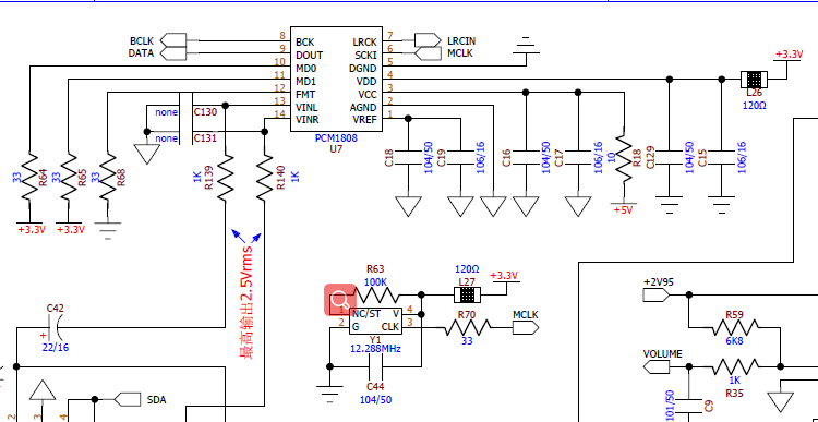PCM1808 右声道输入信号超过3Vpp,左声道会被干扰