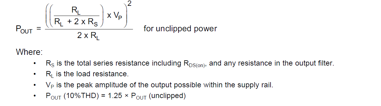 如下图所示,计算Pout的公式的分母为什么是2倍的RL,公式的分子计算出来的是单个BTL扬声器所承受的电压的平方,感觉分母应该是1倍扬声器的阻抗RL才对,为什么会是2倍RL,很疑惑?