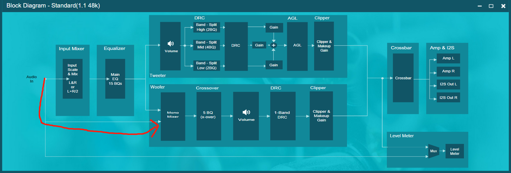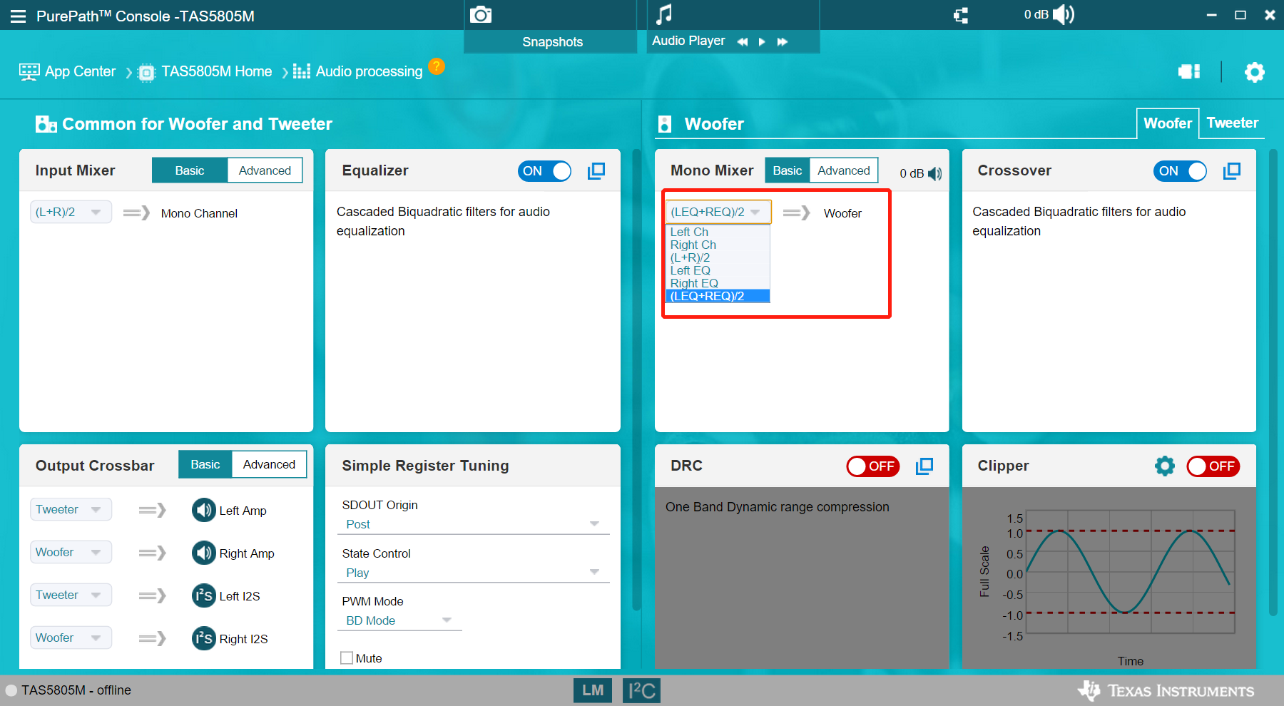 TAS5805 输出mono1.1,PPC3调试界面如下,请问:1、红色方框中L/R EQ是代表什么?