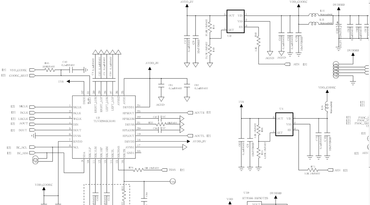 用接近开发板的电路,测试时,将输入用1uF短路,用苹果手机录音,底噪被很明显的被采集,出线白色条纹带,电源已经更改,现象没有任何改善。特别是在70Hz以下频段,有明显的噪声存在,是芯片本身的问题,还是软件及硬件配置问题?关键是消除低频噪声(该软件需要做实时监听功能),是不是不能用EQ调节功能?