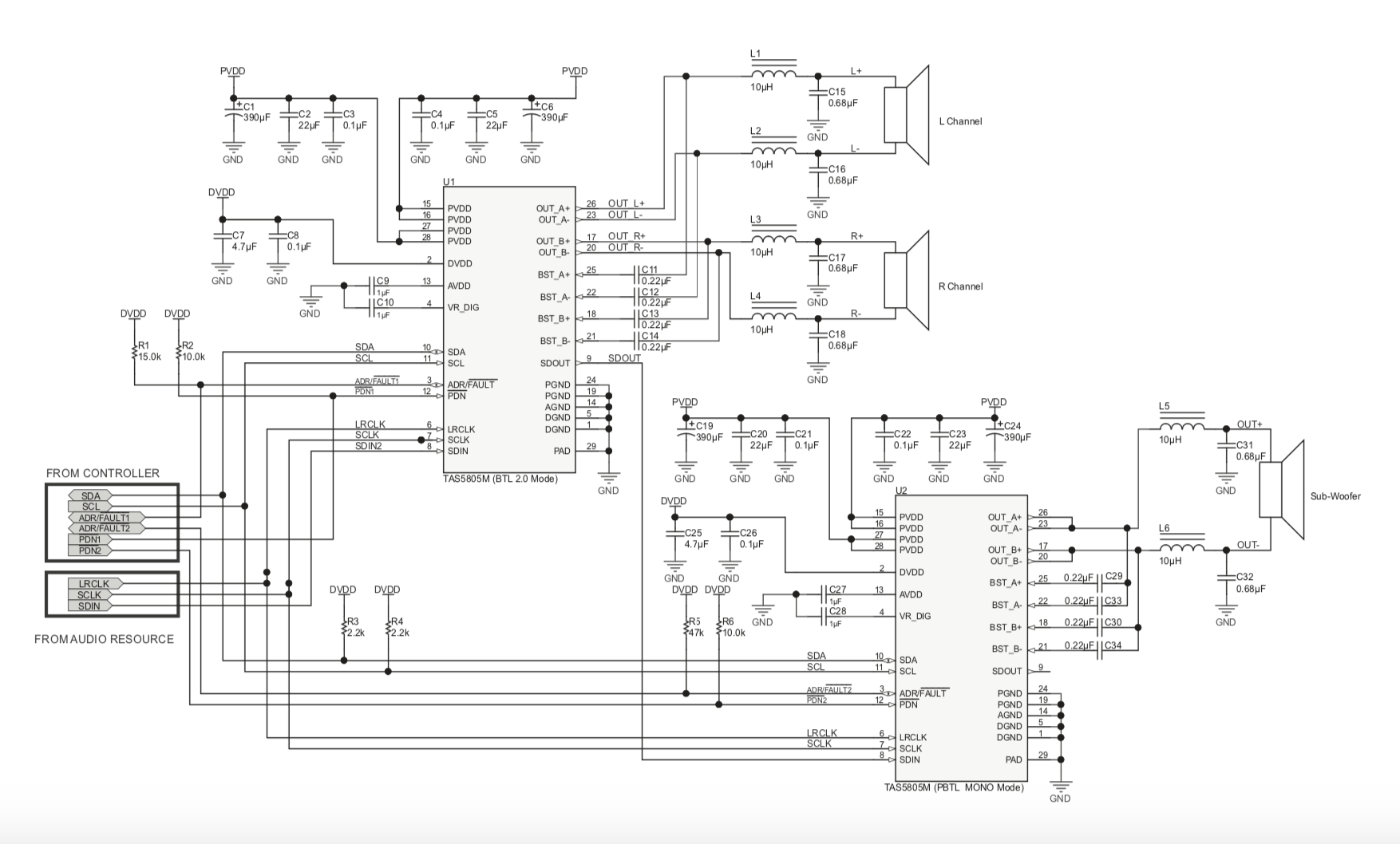 I2S 輸入-> TAS5805 = Mono