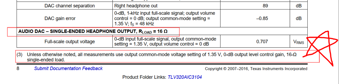 实测结果:播放出来的信号强度比手册上的小了202mVrms;