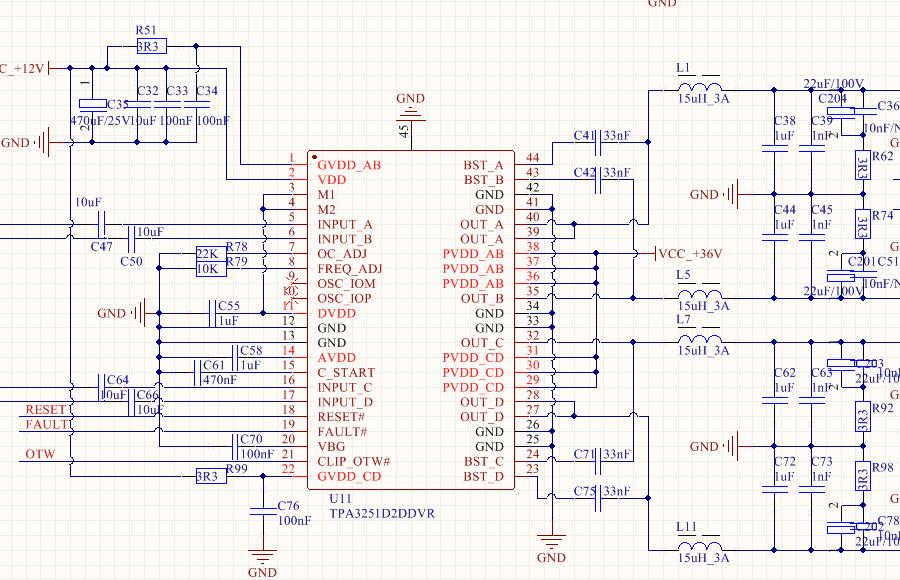 我把C47,C50电容去掉,输入端接GND,把输出的LC滤波去掉后,一上电就还没跑就开始过温警报,BST电容没有拆,有谁能解释下为什么会这样,该怎么出来才能解决?