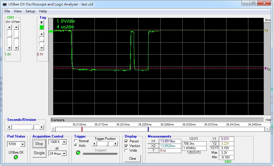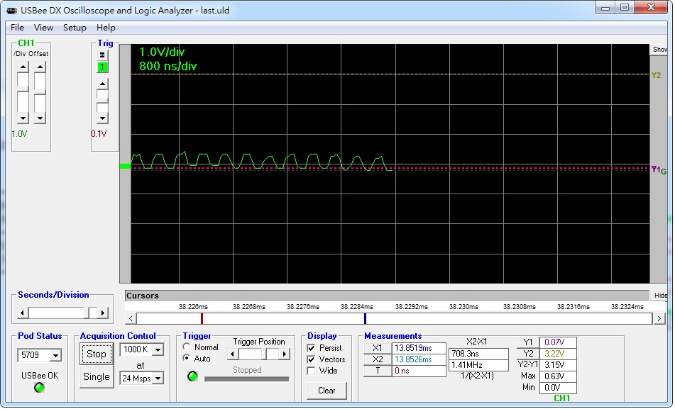 下面第一張圖是正常的, 第二張圖波形就變得很小