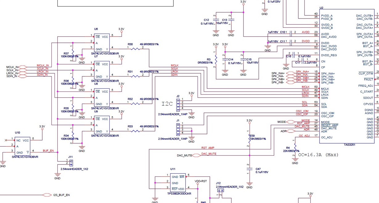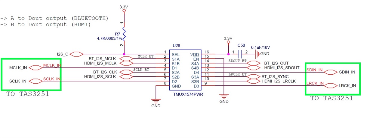 我的TAS3251應用在I2S切換上,如右敘述: BT -> I2S -> TMUX1574DYYR -> TAS3251