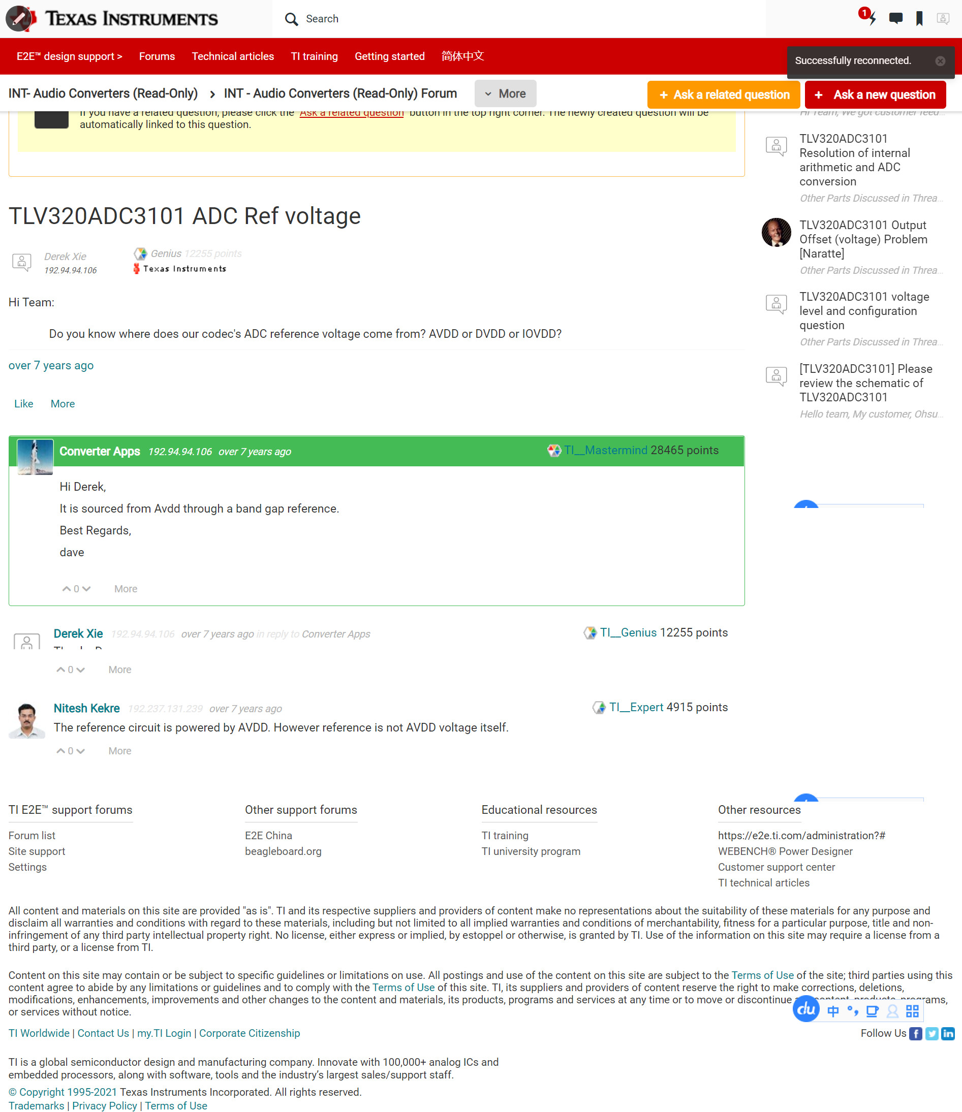 如何查看/配置 TLV320ADC3101 DOUT 的基准电压/参考电压?