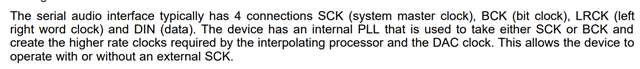 请问PCM5102A是否支持3线I2S输入(no MCLK),如果不支持是否有其他推荐型号。