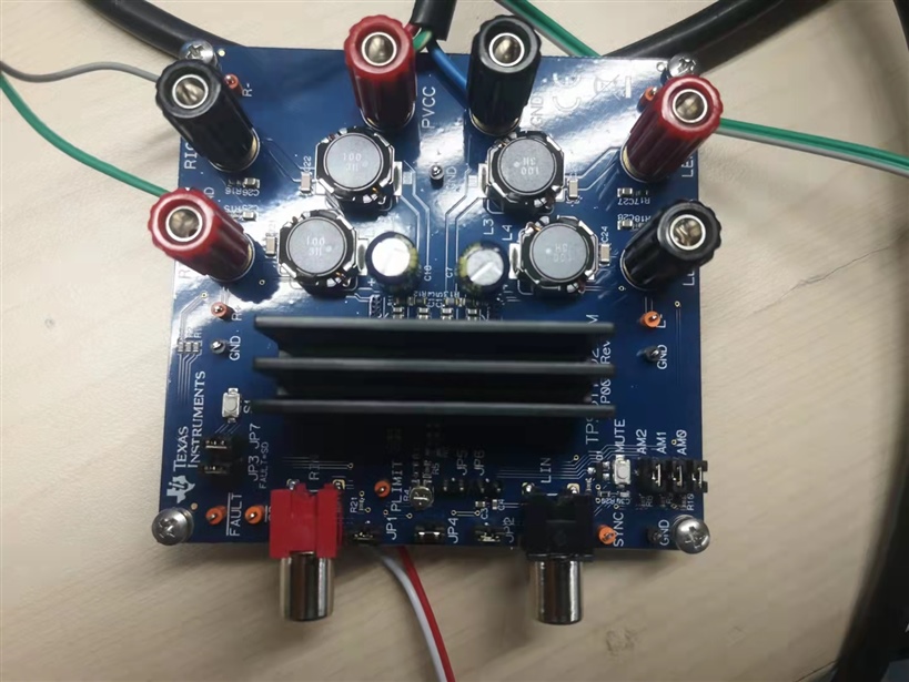 您是配置为PBTL模式吗?PBTL模式的话,输入信号接RIN,LIN接地,JP5 、JP6 接 GND;输出RIGHT+和RIGHT-短接,然后接扬声器一端,LEFT+和LEFT-短接,接扬声器另一端