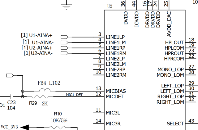 我们的会议音频产品使用的aic3106作为codec,产品采用了2路mic输入,一直使用的是lin1L和lin1r作为模拟通道输入。最近有客户反馈,一个mic接入采集卡,另外一个mic不接入采集卡,当很大声音对着一个mic喊话时,另外一个mic也能录到声音。