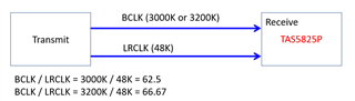 目前我們使用TAS5825P有發生下面問題, Transmit端輸出的BCLK會在3MHz or 3.2MHz這兩個頻率跳頻, LRCLK = 48KHz.
