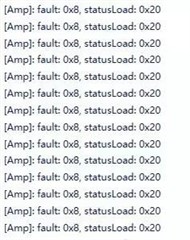 寄存器0x01=0x08还是0x20吗? 如果0x01=0x08, 说明是过流引起的报错。如果0x01=0x20,那就是PVDD过压导致报错。