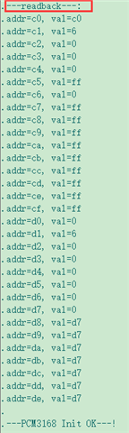 您好,0x51 读取出来为0x51,说明已经配置成24bit 左对齐TDM格式了。所以说明能正常读写寄存器。