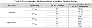 我在设计INxP/M的时候看到,在使用AC耦合设计时,推荐电路如下,都接到了MICBIAS,我也看到了INxP/M spec上不支持负压,那么就是说一定需要一个直流偏置电压了对吗?