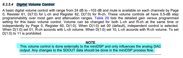 即通过数字音量调节Resister 61/62时,也会调节SDOUT的音量吗?