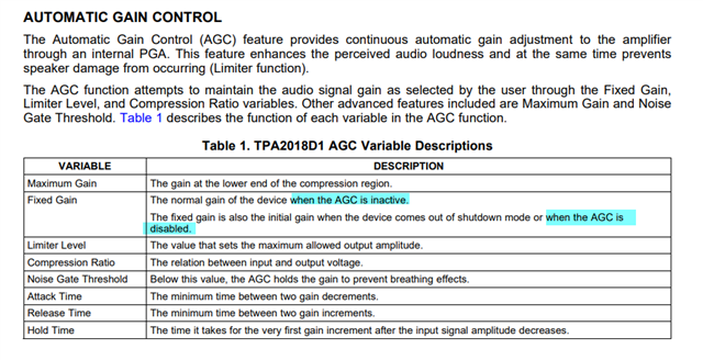 请问fixed gain值这个值是可以改变放大倍率吗,因为目前底噪比较大声,所以想调小放大倍率试下,但是改fixed gain这个值,对声音大小并没有变化,如果不是这个值,哪个可以实现呢