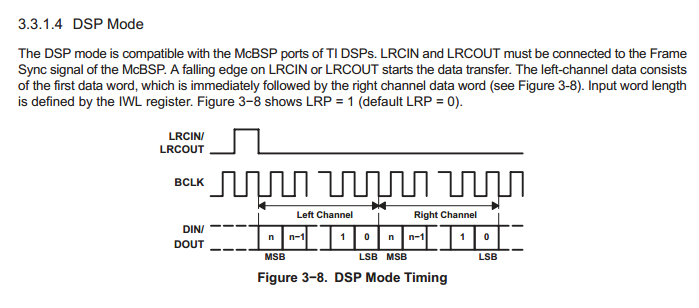 2、使用方式:C6455+AIC23,C6455的SPI口和McBSP口直接互联,C6455的SPI配置为主模式,AIC23的McBSP配置为DSP mode,位宽配置为16bit