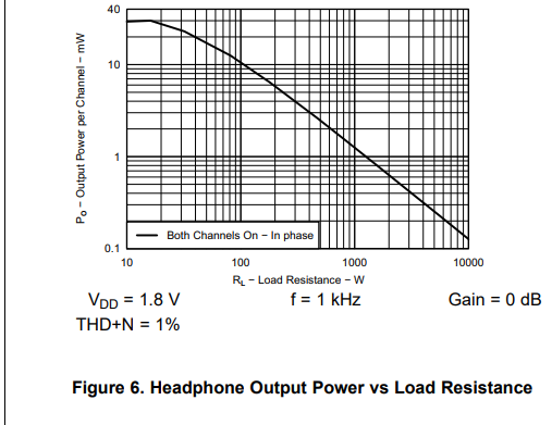 下面这个曲线是输出功率 VS 耳机负载的曲线,您看下是否满足您的要求: