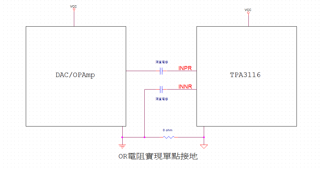 1,TPA3116使用普通BTL模式,拿其中一个声道来讲,在耦合电容前面的模拟音频信号(单端),可以有5V的直流偏置吗?那配合单端的地信号也应该偏执5V吗?