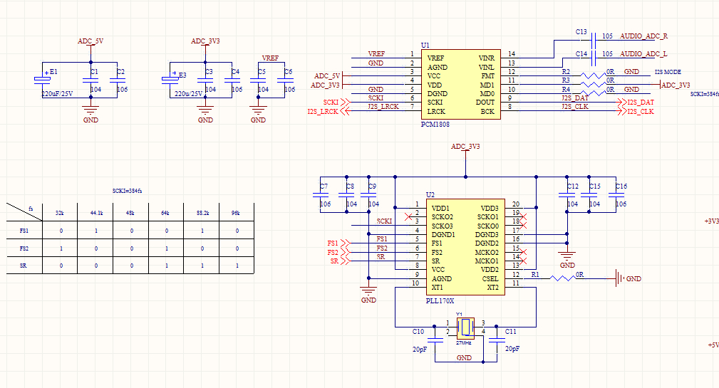 配置完后,包括录制的时候可以用示波器看到DOUT上面总是存在某一个时刻高数据位是高的,那也应该就是录下来的音频信号中的固定周期的噪音。另外之前曾尝试改变成254FS的频率,也是一样的效果。