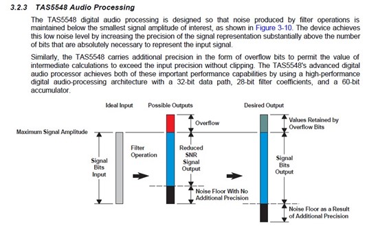 电脑或cd全音量输出, 功放小音量工作,声音伴随着低频会有咔咔 的破音(听起来像过载失真,但同样音量的i2s接到其他数字功放是没有破音的),如果把电脑音量关到一半,即使功放开很大声也不会发生破音。换过多个i2s音源,也试过把tas5548 pwm驱动其他功率芯片或耳机芯片,仍然存在这样的破音问题,所以问题应该出在tas5548这里。