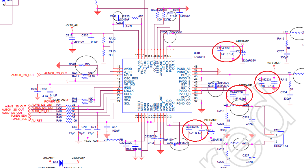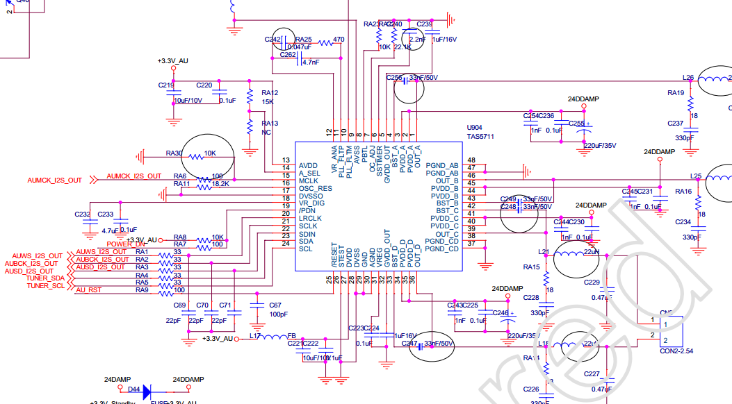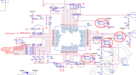另外我看TI的官方开发板用的是24V的电源供电,而且推荐供电在18V以上,我们的机器现在PVDD使用的是12V的供电,是否TAS5711周边的元件参数需要做什么调整呢,I2S输入到TAS5711时是否可通过硬件的方法来限定幅度呢,hope your reply!