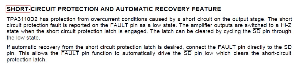 請教TPA31xx系列是否有喇叭輸出的短路保護?