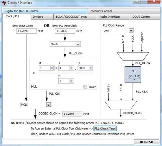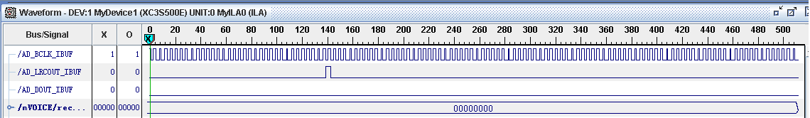 现想做一个声音采集与传输,用的TLV320AIC23b与FPGA相连,配置用SPI接口,数据用DSP模式,TLV320AIC23b工作在Master模式,选择MICIN,外部用无源12M晶振,麦克风MIC用10KHz正弦波代替,采样频率设为44.1KHz。现在配置完成后BCLK有12M输出,且LRCOUT有高脉冲产生,周期为44.1KHz,但DOUT脚一直为低(如附件),请问一下这是为什么?万分感谢呀。
