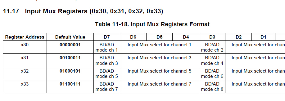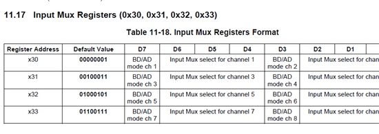 0x30-0x33确实没有说清楚D7和D3是0还是1代表AD还是BD,非常抱歉没有说清楚。如果急需弄明白的话,请您配置一下,观察一下PWM输出的波形,与datasheet对比就可以了。如有困难,可以在联系我们。