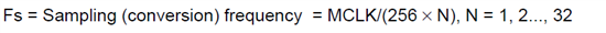 常用的采样率是8K,44.1K,48K,96K等,MCLK定下来之后,要能整除,N的选择就没有那么多了。所以根据对应的采样频率和MCLK,选择N即可。