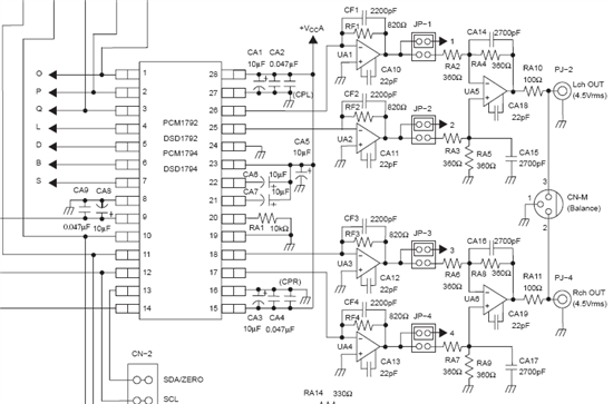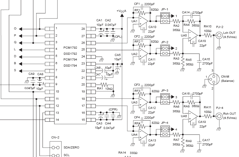 我目前在用PCM1792ADBR做一个小电流信号发生器,要求PCM1792ADBR出来的电流I经过I/V电路后,输出噪声要小于1uV,但是用示波器测量得到的噪声值竟然有80uV,这是不能接受的。PCM1792ADBR的数据手册里面写到SNR有127dB,为什么噪声会那么大呢?