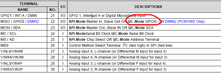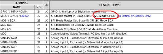 2、PCM1865的第22管脚,如图,作为I2C接口有何作用?