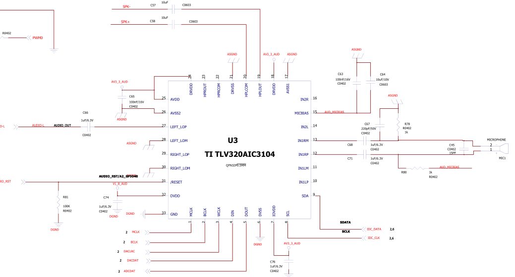4.下面的一个配置,发给你参考,可能和你的时钟部分处理的会有不同,我这个配置是只提供MCLK,其余的I2S时钟由codec产生,这个地方如果和你的设计不同你可以不参考。其余的,你可以对比看一下。