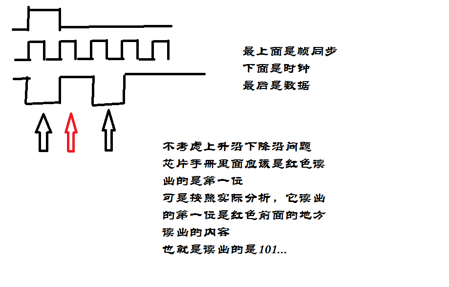 问题来了:实际亮出的数据,MSB位是出现在上路紫色框的位置。而不是在帧同步结束后的第一个时钟。
