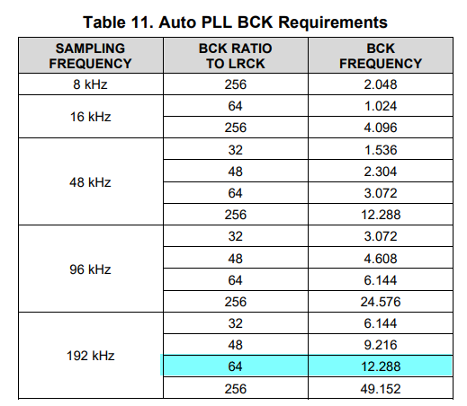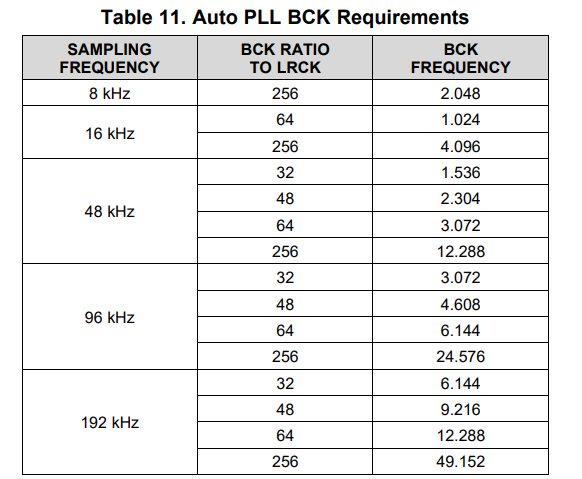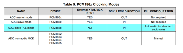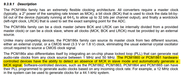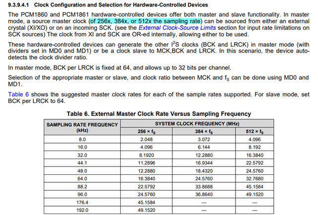 PCM1861: PCM1861 MCLK及sample rate支持
