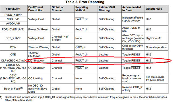 TPA3255短路保护后如何自动复位。