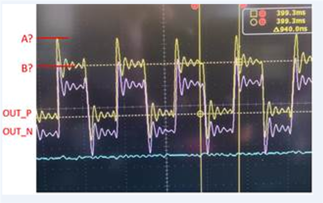 2.测试peak值从B这里,B上面到A部分的是过冲信号,layout导致的信号过冲比较严重。