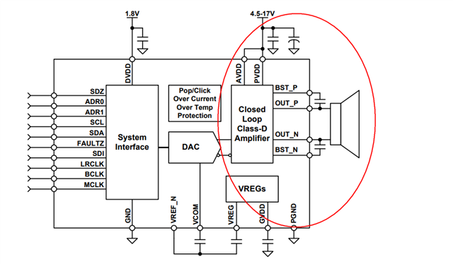这里指的是class D 端运放输入和输出之间的gain以及输出满量程幅值的换算,是经过DAC转化后的模拟信号。