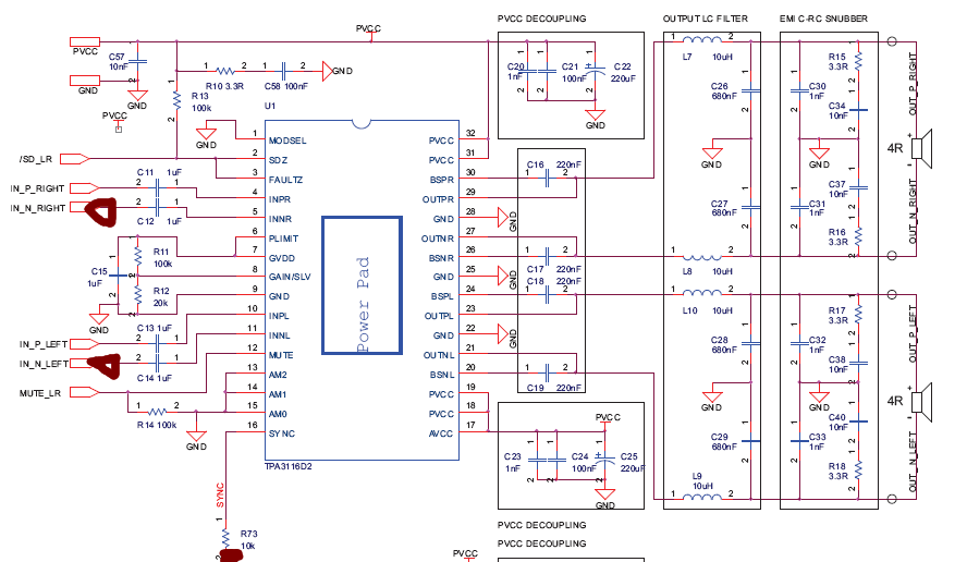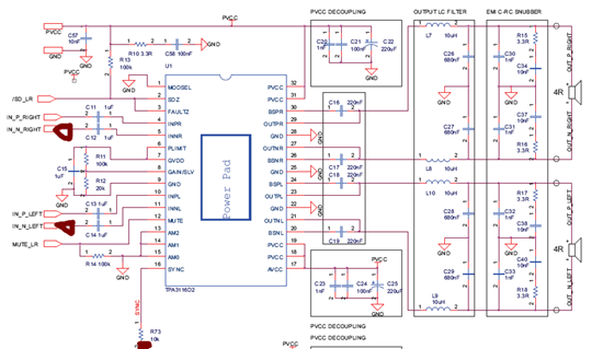 我按照官方电路开发了一块TPA3116D2的电路板.