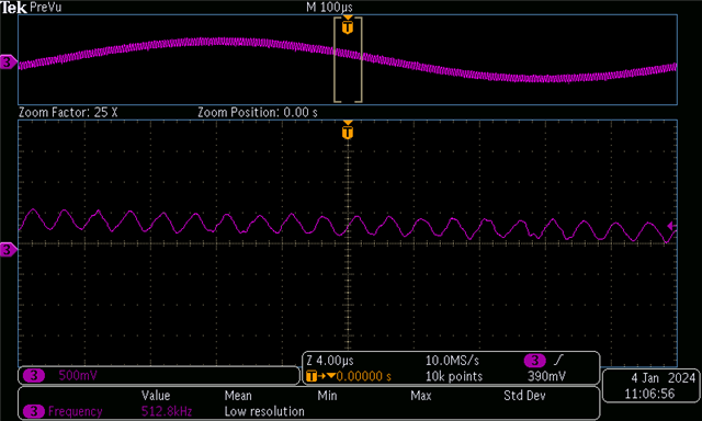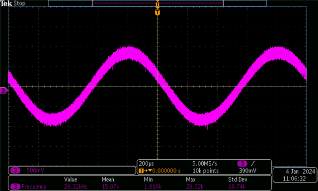 在PCM5121 OUTL&OUTR串10uF,并上100nF时,输出所有信号都会叠加一个400-500khz的高频正弦波?当将100nF去掉,或者在10uF串100R电阻时,此高频信号消失。请问产生此高频信号的原因是什么?