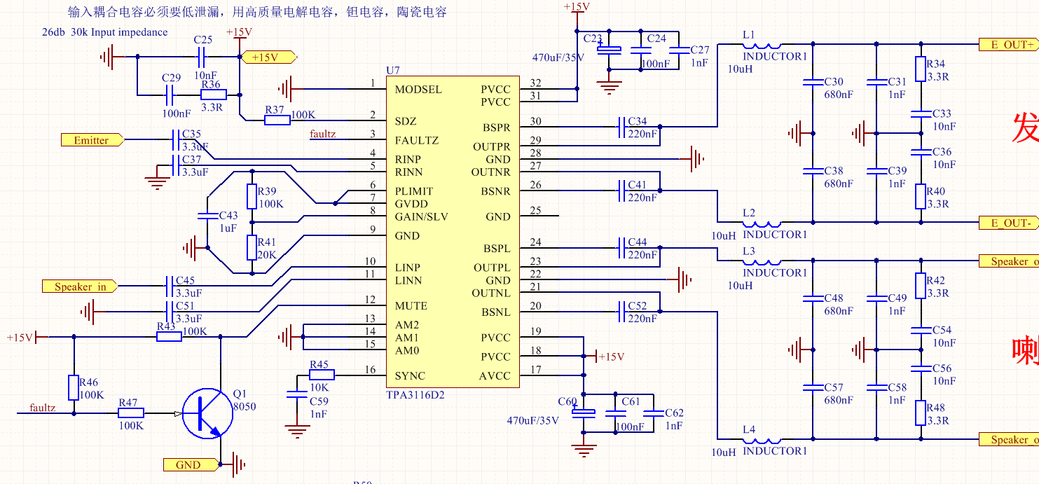TPA3116 参考PDF设计的电路,但是AM2 AM1 AM0 频率只能选000,001,010,不能选其他两种100和011,供电电压是15V