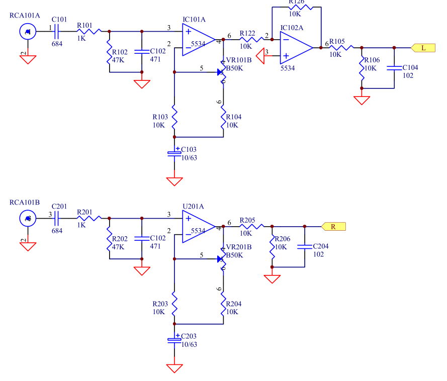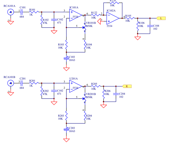 你好,opa627BP 用来做前级放大,这样设计合理吗 请大家指教一下。我之前耦合输入电容 0.68UF,R102接地电阻 47K,低噪音很大,我把它改为10K,低噪音就变少了很多,但低频衰减了3个DB左右