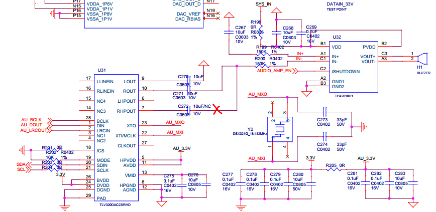 这是我的原理图,尝试了很多种扬声器,某宝上买的手机扬声器,只有一种可以正常播放音频,其余全部破音,音质很差,请问是怎么回事
