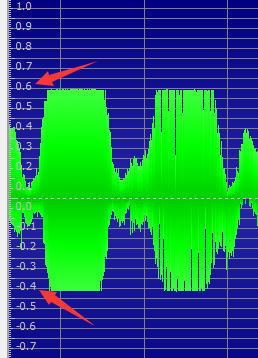 结果发现录的音出现了截止问题,当音量达到一定量时被截止,如下图我使用声音分析软件的截图。