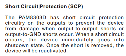 看了下规格书,里面说有短路保护,但是没有描述短路保护功能是什么样?
