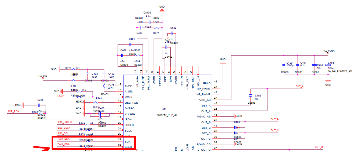 驱动在调试tas5717的时候, 0X02寄存器报错 02,对比Datasheet,说这个是过压,过热,过流,或者欠压造成的,但测试电压都正常。