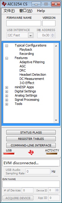 当tlv320aic 254 与PC 连接好,运行AIC3254 CS,就连不上, 如图: